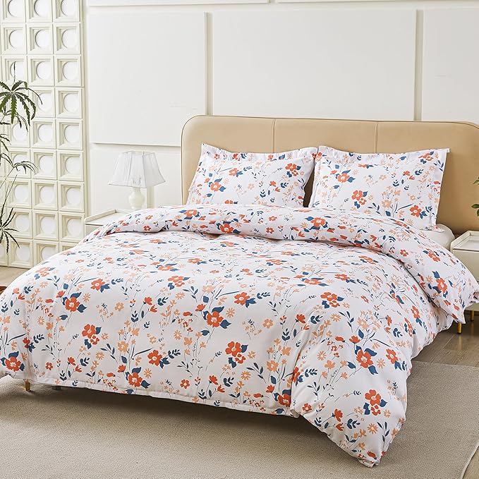 Unique Design: Orange Flower printed duvet cover features a hidden zipper closure and four corner ties, holding your comforter or duvet insert in place for for a cozy night's sleep