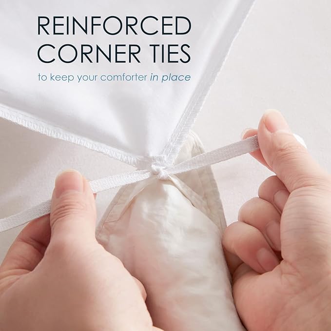 Microfiber Duvet Cover with Ties: Hotel duvet cover features 4 ties to securely fasten your duvet in place, and practical clear button closure for a neat appearance. Pillow shams include back overlap closure and decorative 2” flange.