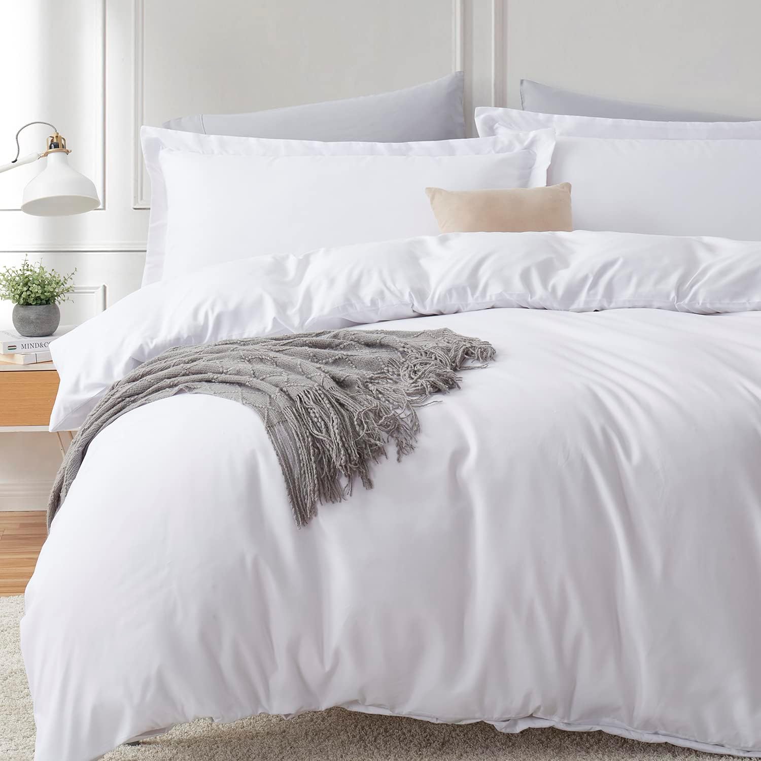 White Duvet Cover Queen Size - 3 Piece Queen Duvet Cover Set, Soft Double Brushed Queen Size Duvet Covers with Button Closure, 1 Duvet Cover 90x90 inches and 2 Pillow Shams