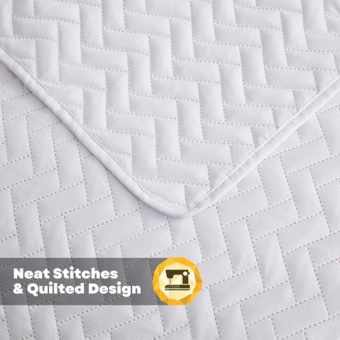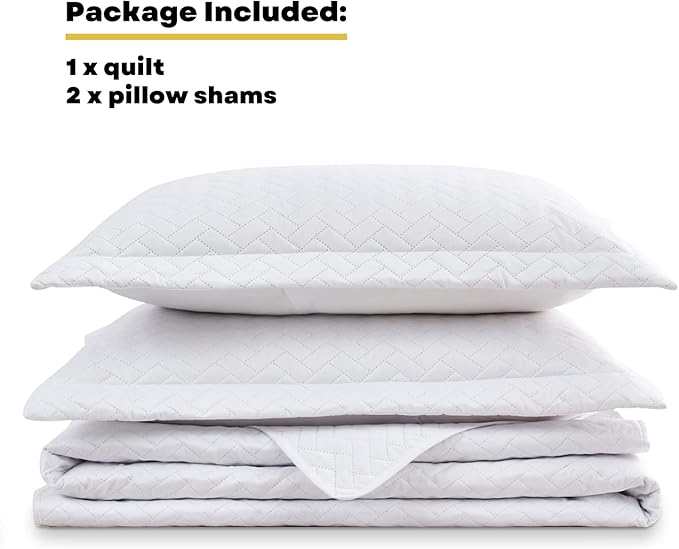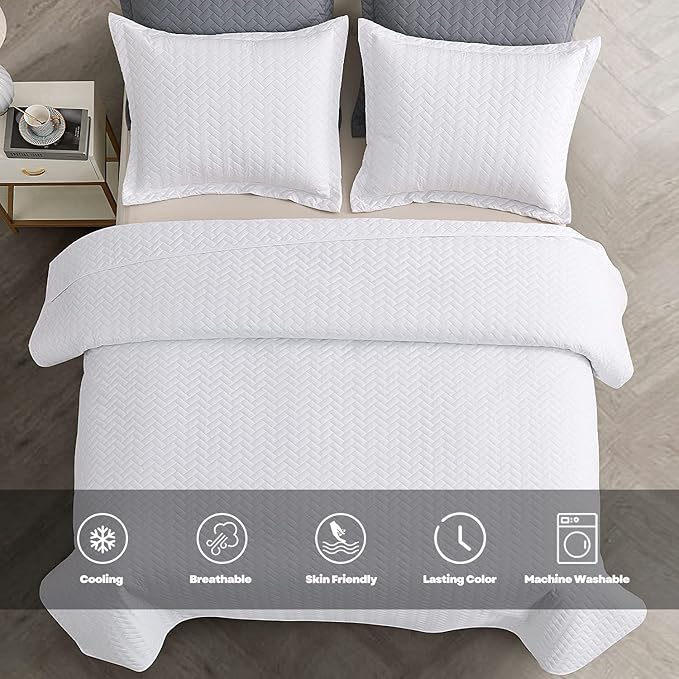 White Quilt Set Queen Size, Lightweight Bedspread Ultrasonic Chevron Pattern Light Coverlet for All Season Comforter Bedding Decor - 3 Piece Full Bed Cover Sets